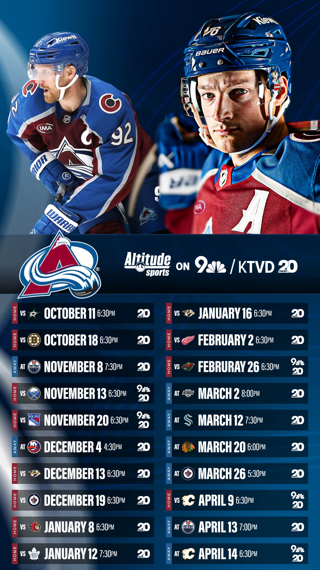 For residents outside the Denver DMA, broadcasts are available on Altitude Sports and can be streamed through the Altitude+ app.